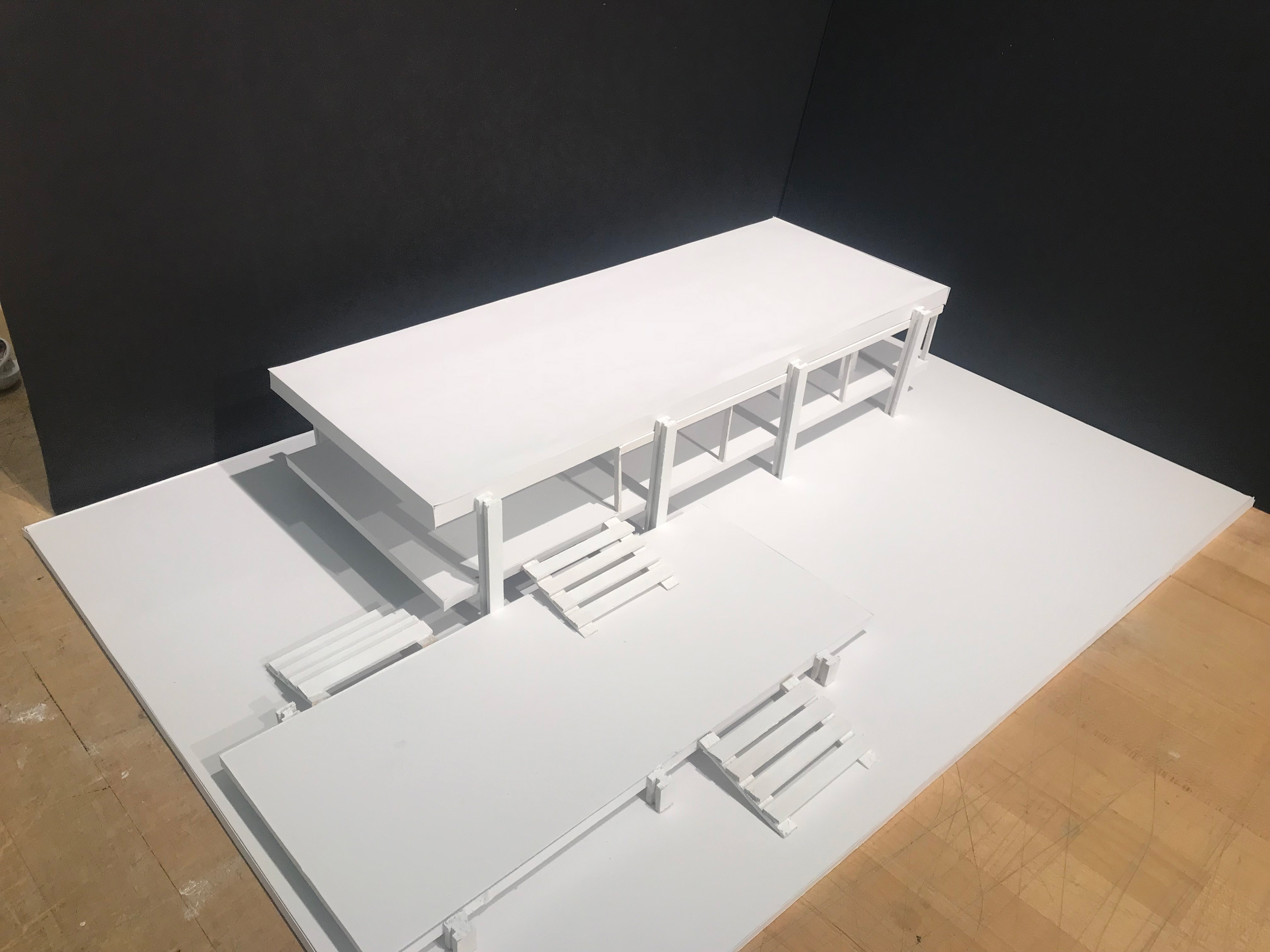 I have left the remainder of the photos unedited to accurately represent the craft of the model. Note the detail of the I-beams along the facade, as well as the construction of the stairs on the platforms.