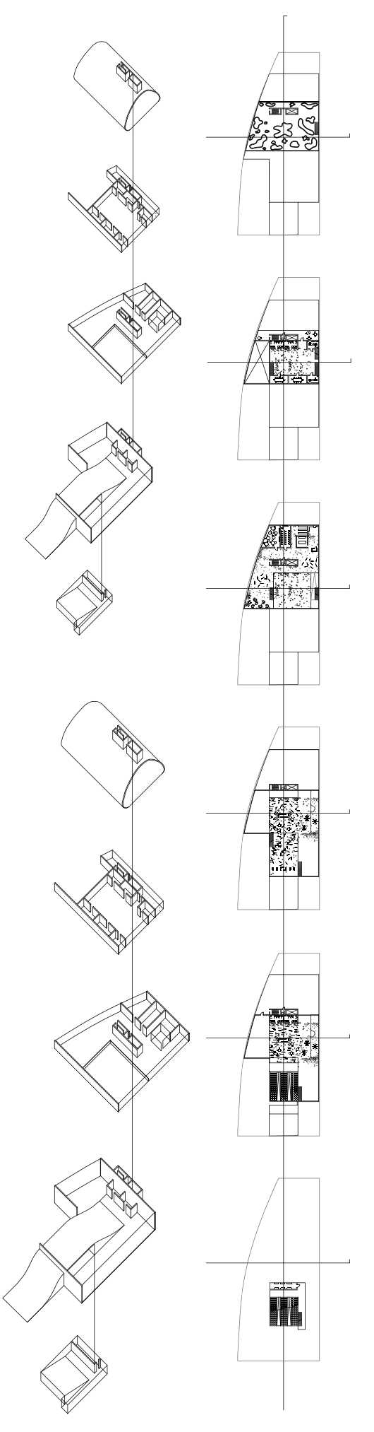 Unfortunately, I didn't have time to cut more than 300 columns for my physical model, so chose to only represent them in drawings.