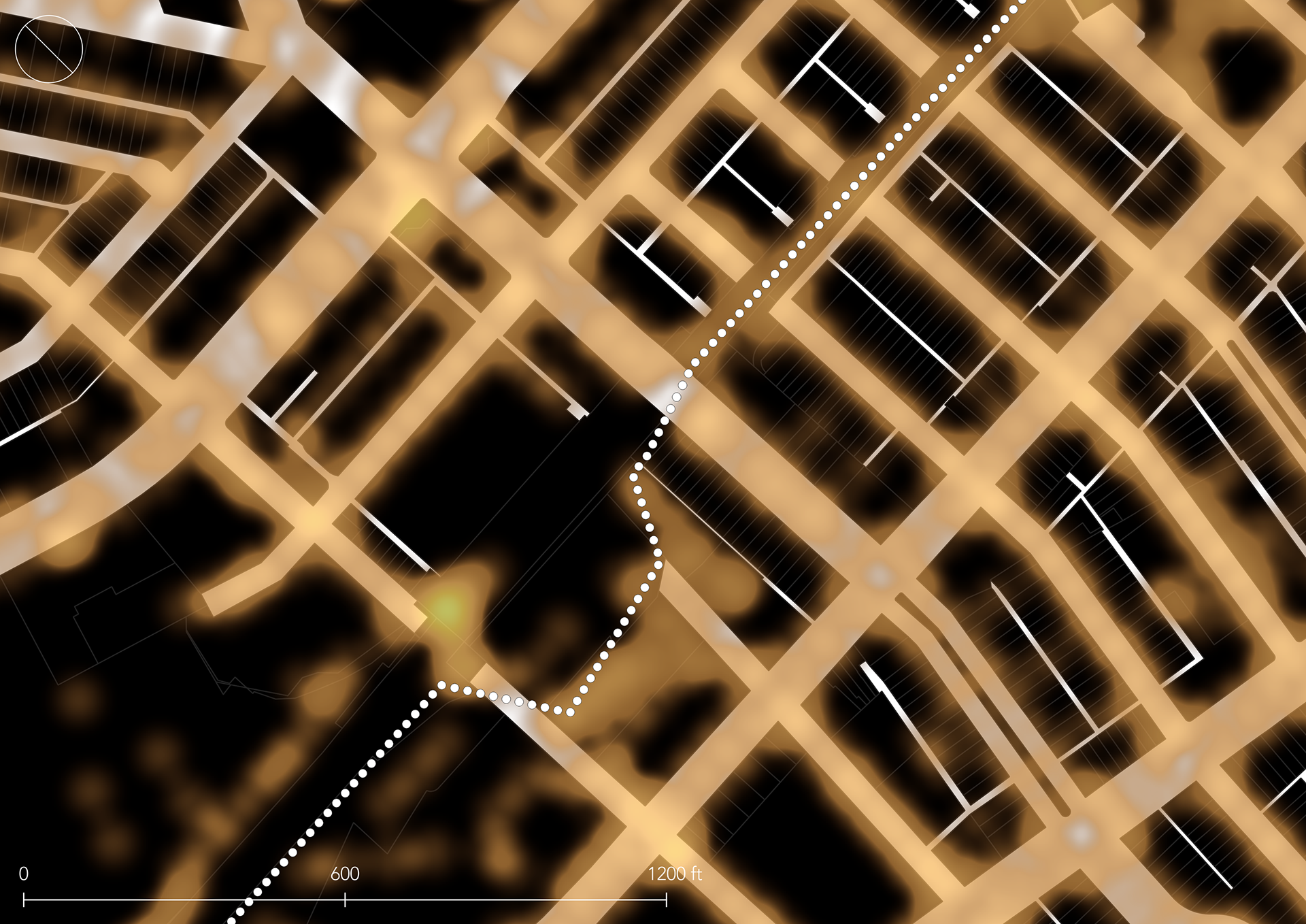 Here's a map I made of every streetlight in the area, showing the best- and worst-lit spots.